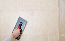 使用软橡胶底填缝抹刀或油灰刀将填缝剂填入瓷砖间的缝隙内,填入缝隙的填缝剂需挤压紧密,与粘结基层间无空填缝剂。表干后(一般填缝剂施工完成10~20分钟,根据施工时温度环境的不同,时间会有不同),使用软橡胶底抹刀或微湿的海绵球清除瓷砖缝隙边溢出的填缝剂浆料。
