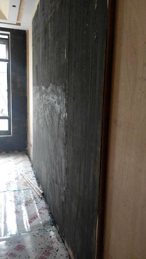 木板钉在墙面过程中,处理不是非常平整,部分位置翘起。