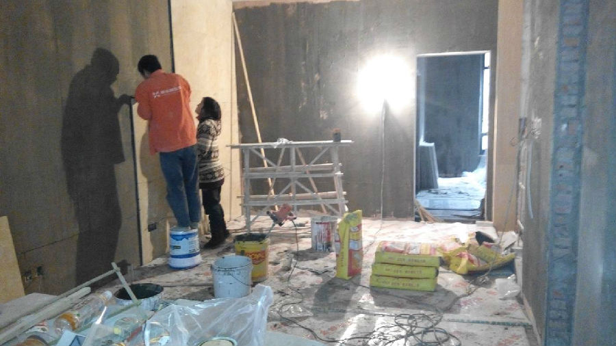 经过半小时的指导,彭老师就已经掌握饿了使用安尼特瓷砖胶粘剂。